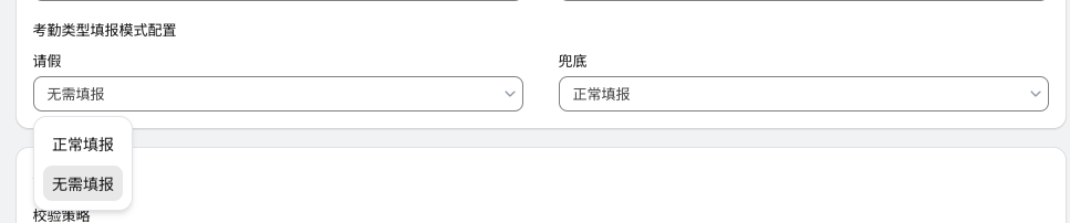 - 考勤校验适用于按照小时模式记录,百分比模式记录时仅用于展示