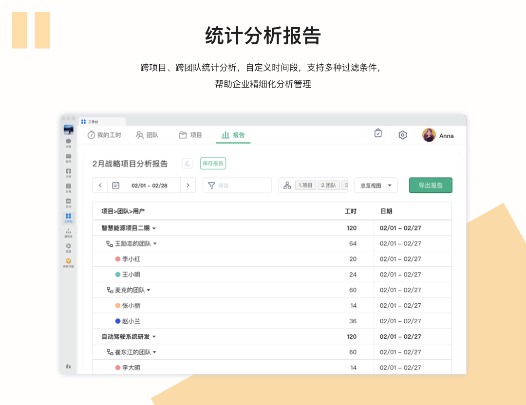 维拉日志提供严格的权限管理,并与飞书、企业微信等平台集成,只有企业指定研发人员可以进入工具内进行工时记录,有权限人员才可以进行项目成员添加,避免研发人员与记录工时表不一致的情况。同时成员在线填报工时,可实时的进行工时统计和报告查看,帮助管理层监控和核对研发人员的工时记录。